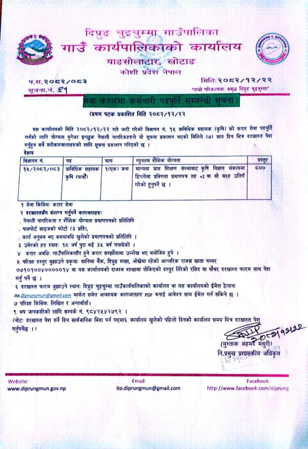 सेवा करारमा कर्मचारी पदपूर्ति सम्बन्धी सूचना !!!