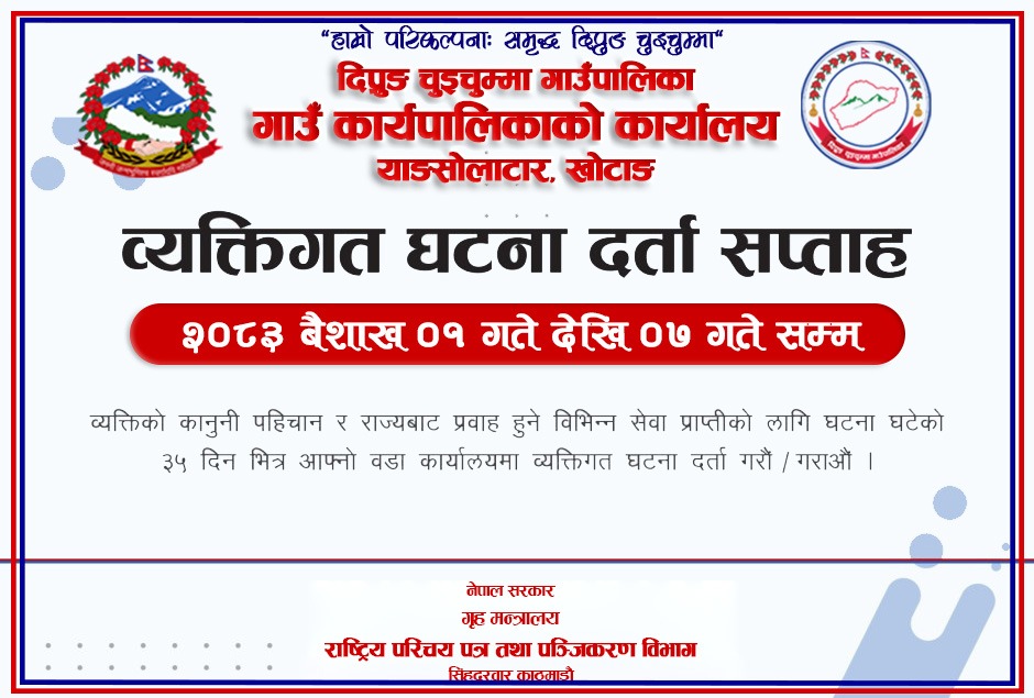 व्यक्तिगत घटना दर्ता सप्ताह २०८३ बैशाख १ देखि ७ गरे सम्म !!!