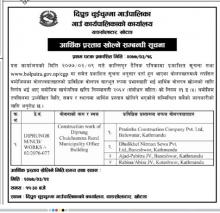 गाउँपालिका भवन निर्माण सम्बन्धि बोलपत्रको आर्थिक प्रस्ताव खोल्ने सम्बन्धि सूचना (कान्तिपुर दैनिक )