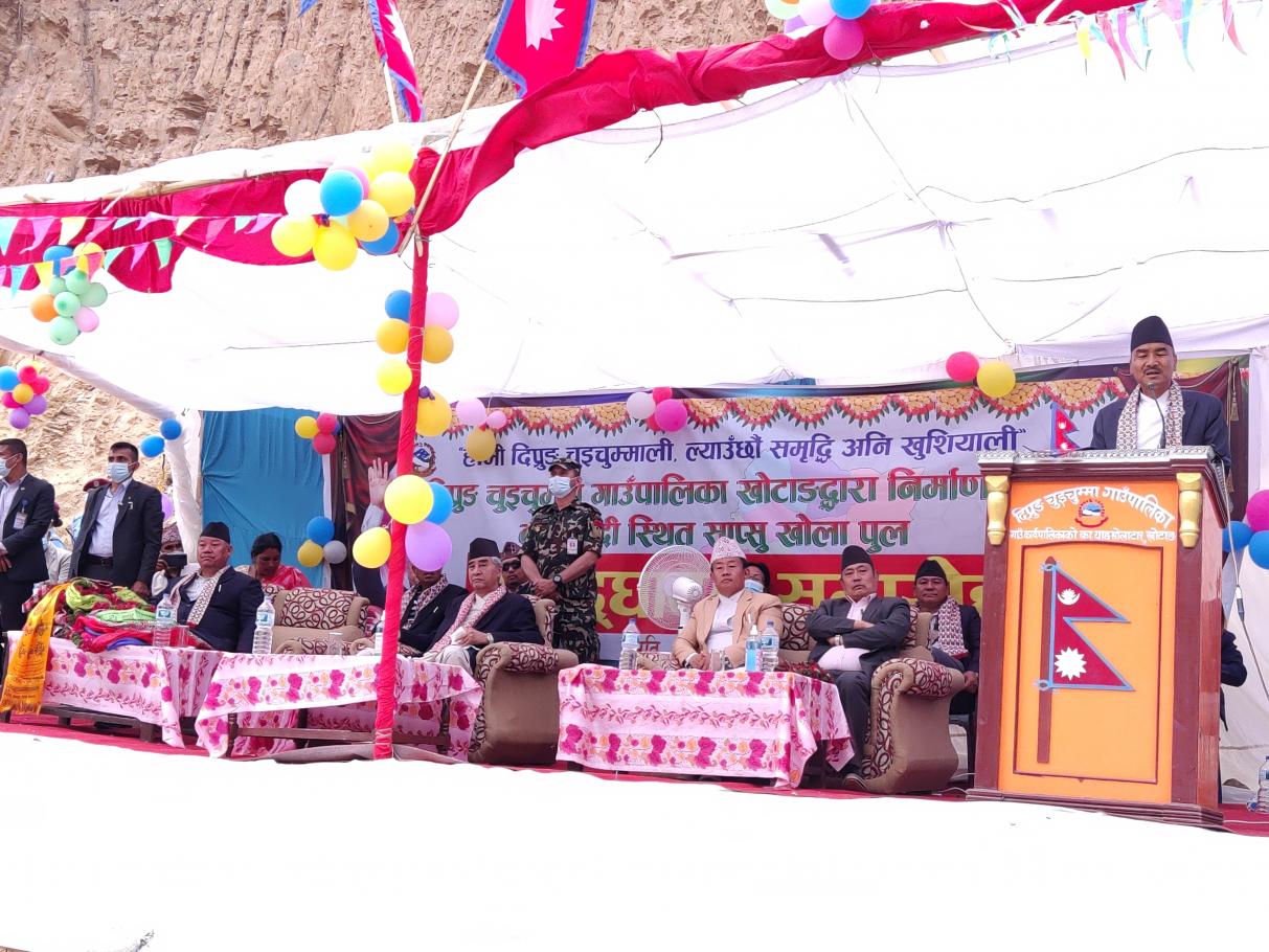 दिप्रुङ चुइचुम्मा गाउँपालिका वडा नं. १ याम्खा स्थित बाटोफेदी साप्सु खोलाको मोटरेवल पुल सम्माननीय प्रधानमन्त्री शेर बहादुर देउवा ज्यूबाट आज मिति २०७८ चैत्र ७ गते समुद्घाटन