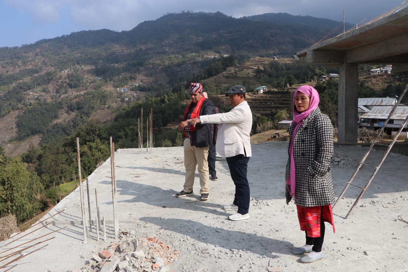 दिप्रुङ चुइचुम्मा गाउँपालिकाको प्रशासकीय भवनको अनुगमन गर्नु हुँदै खोटाङ जिल्लाका प्रमुख जिल्ला अधिकारी श्री फणिन्द्र दाहाल ज्यू लगायत टोली ।